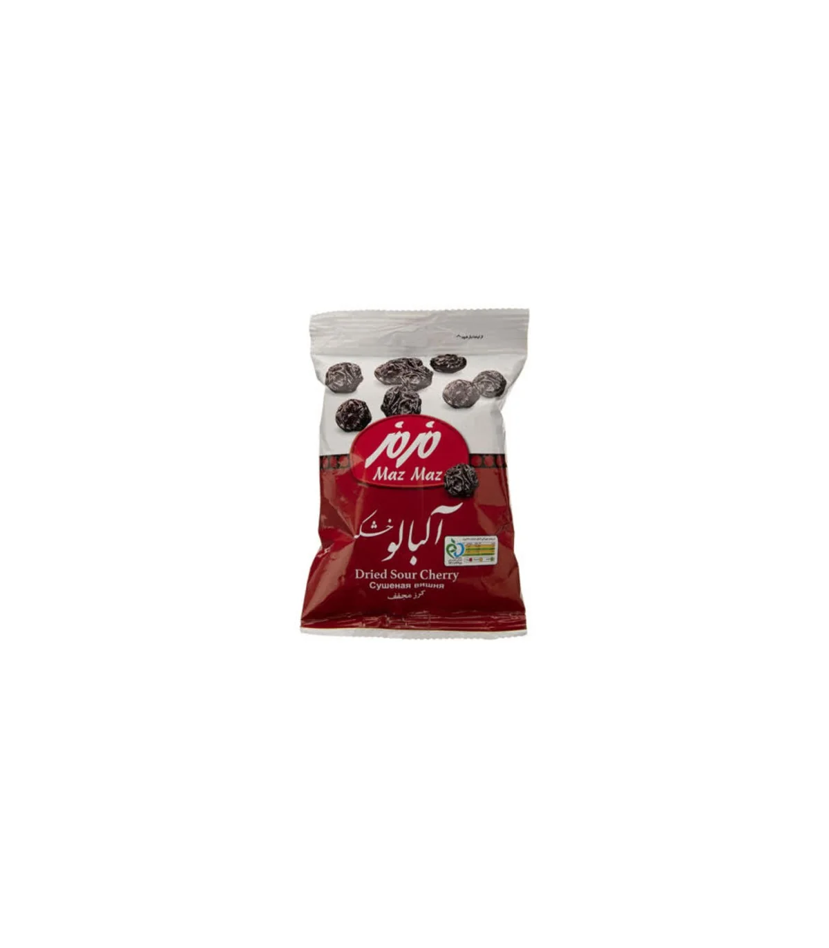 آلبالو خشک مزمز 70 گرم نوعی محصول برای وعده های خوراکی شما می باشد. آلبالو خشک فشار خون را درمان می کند و برای دیابت بسیار مفید می باشد. ارزش غذایی در هر وعده خوراکی 30 گرم عبارت است از انرژی 88/09 کیلو کالری، قند 4/59 گرم، چربی 0/60 گرم، نمک 0/31 گرم، اسیدهای چرب ترانس 0 گرم می باشد.