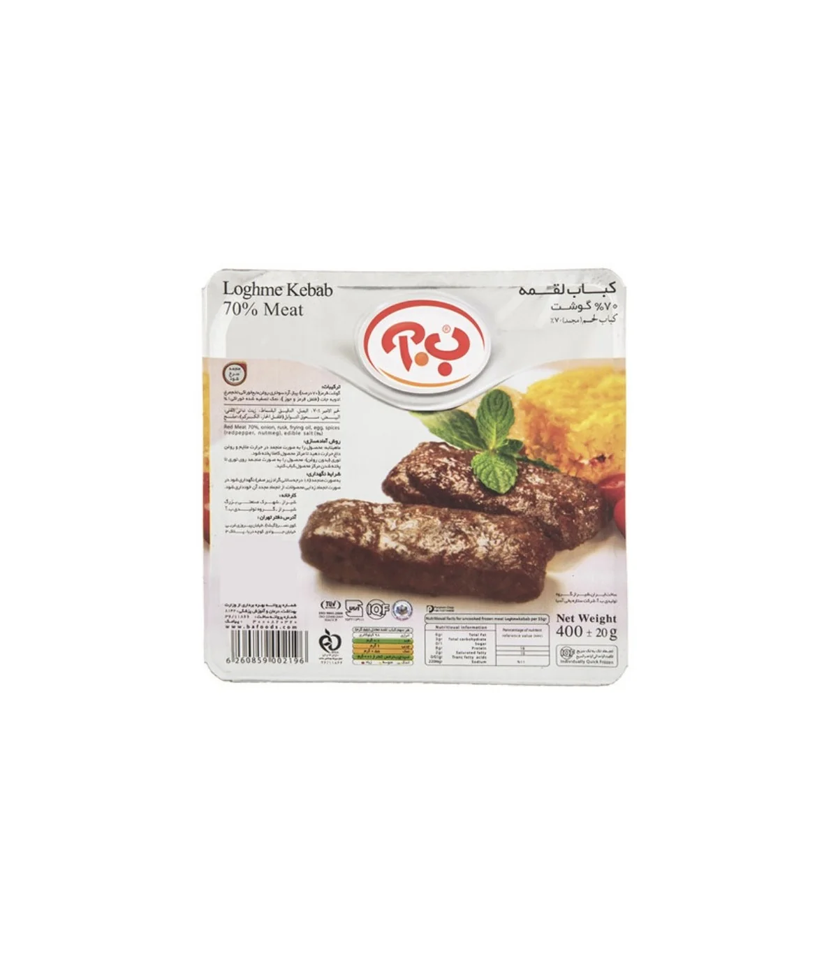 کباب لقمه 70% ب.آ مقدار 400 گرم