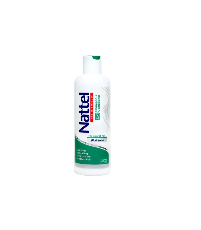 شامپو دو قلو (یا 2 در 1) ناتل یک شوینده مغذی است که برای موهای زبر و رنگ شده طراحی شده است. این شامپو با داشتن ترکیباتی مانند گوار و پروویتامین B5 (دپانتول)، علاوه بر پاکیزگی، به نرمکنندگی، افزایش استحکام، محافظت از ساقه مو و جلوگیری از خشکی و موخوره کمک میکند و نیازی به استفاده از نرمکننده جداگانه ندارد