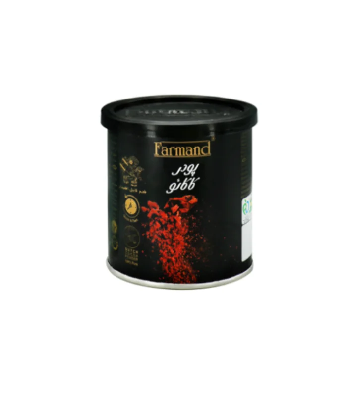 پودر کاکائوی خالص و هلندی است که برای تهیه انواع دسرها، کیکها، شیرینیها و نوشیدنیهای شکلاتی کاربرد دارد [1، 4، 9]. این محصول، که فاقد شکر افزوده و مواد نگهدارنده است، رنگ و طعم اصیل کاکائو را ارائه میدهد و برای مصارف خانگی، کافیشاپها و قنادی حرفهای مناسب است