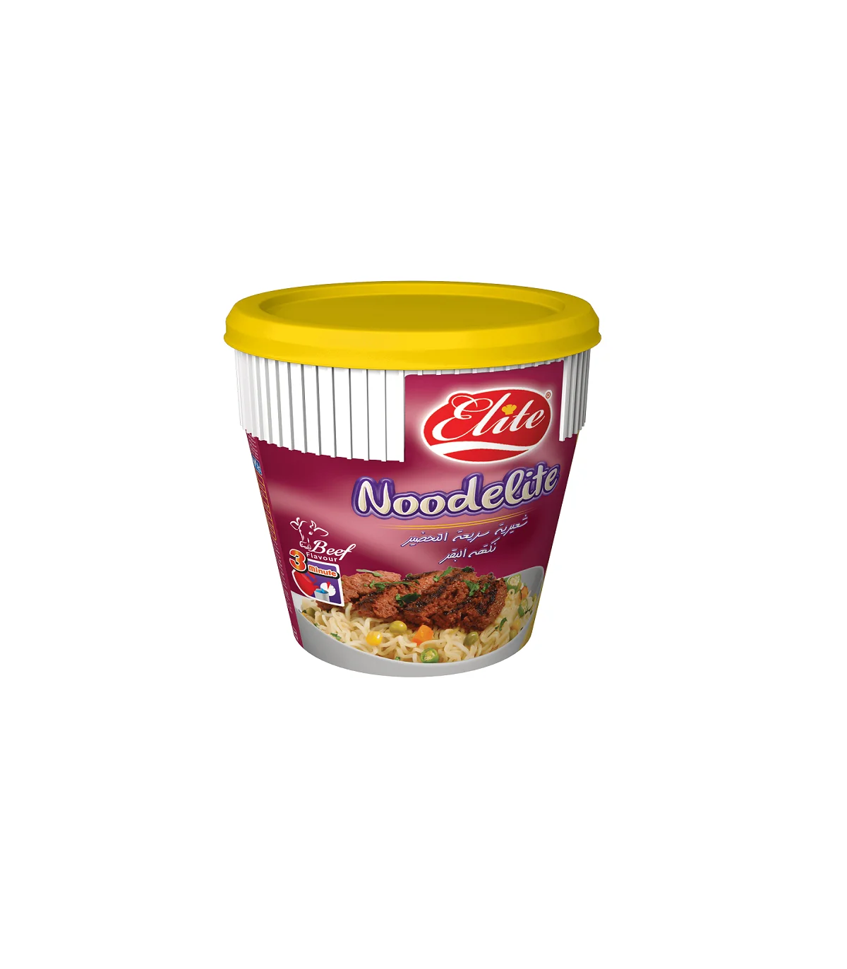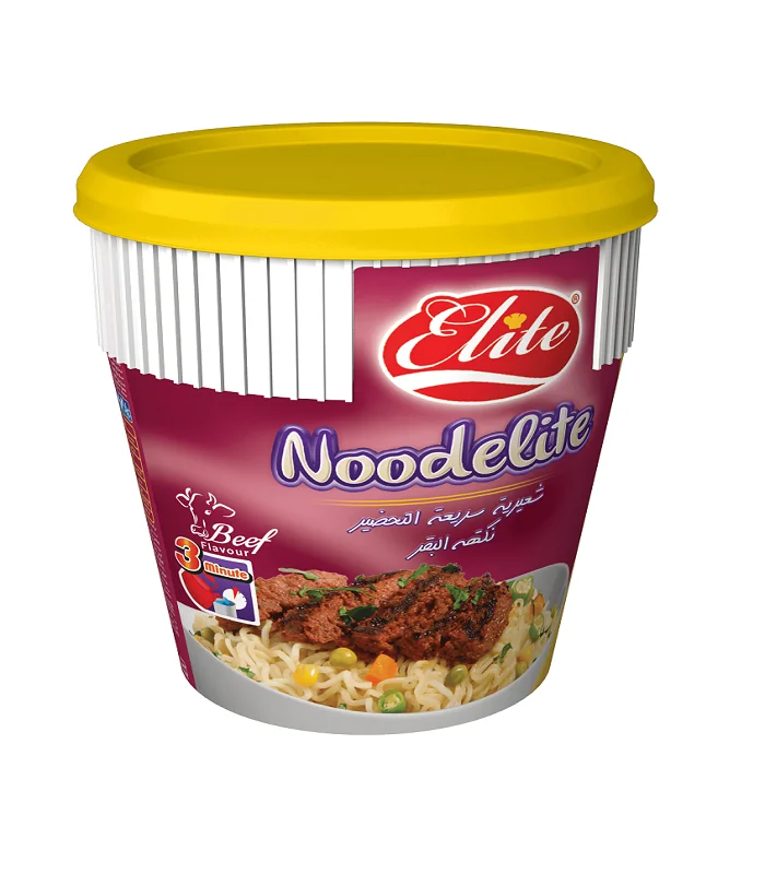 نودل الیت لیوانی با طعم گوشت تنها در 3 دقیقه و فقط با یک لیوان آب جوش آماده میشود. هر نودالیت لیوانی گوشت، با طعمی عالی همراه با نودالیت، یک بسته چاشنی حاوی عصاره گوشت گوساله و ادویه در لیوانهای مخصوص عرضه میشود.