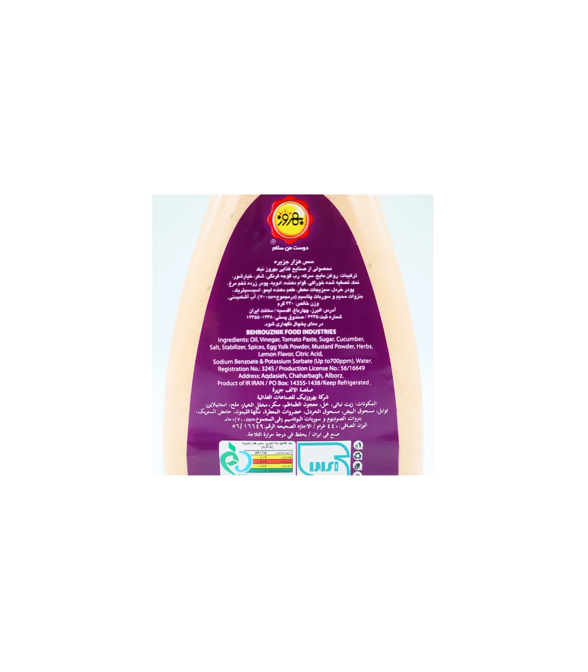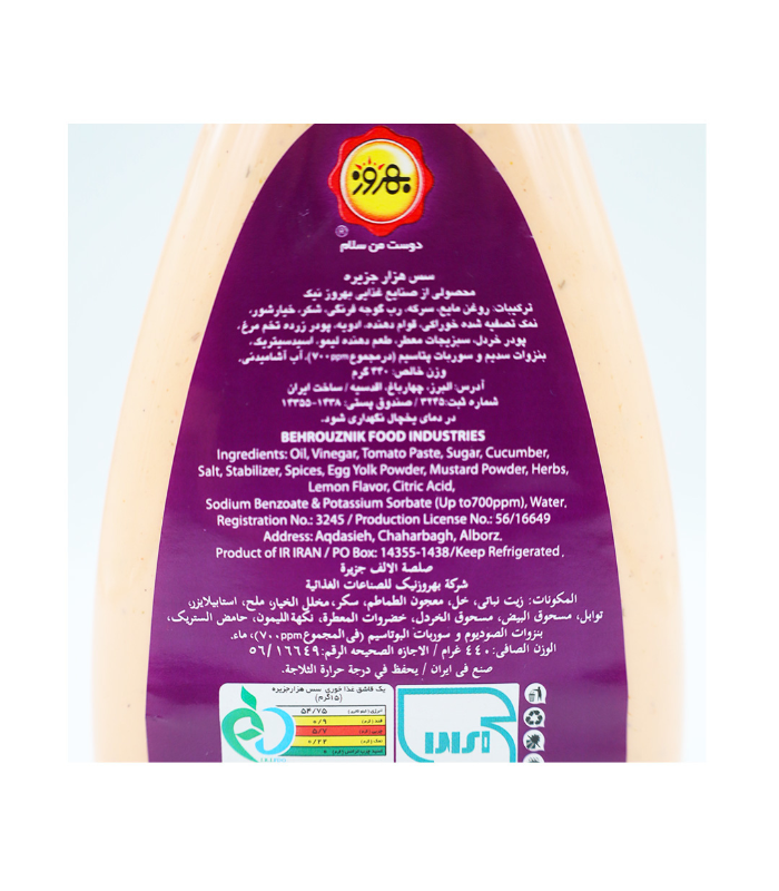 سس هزار جزیره اصل برند بهروز|محصولی با کیفیت|با وزن خالص:440 گرم