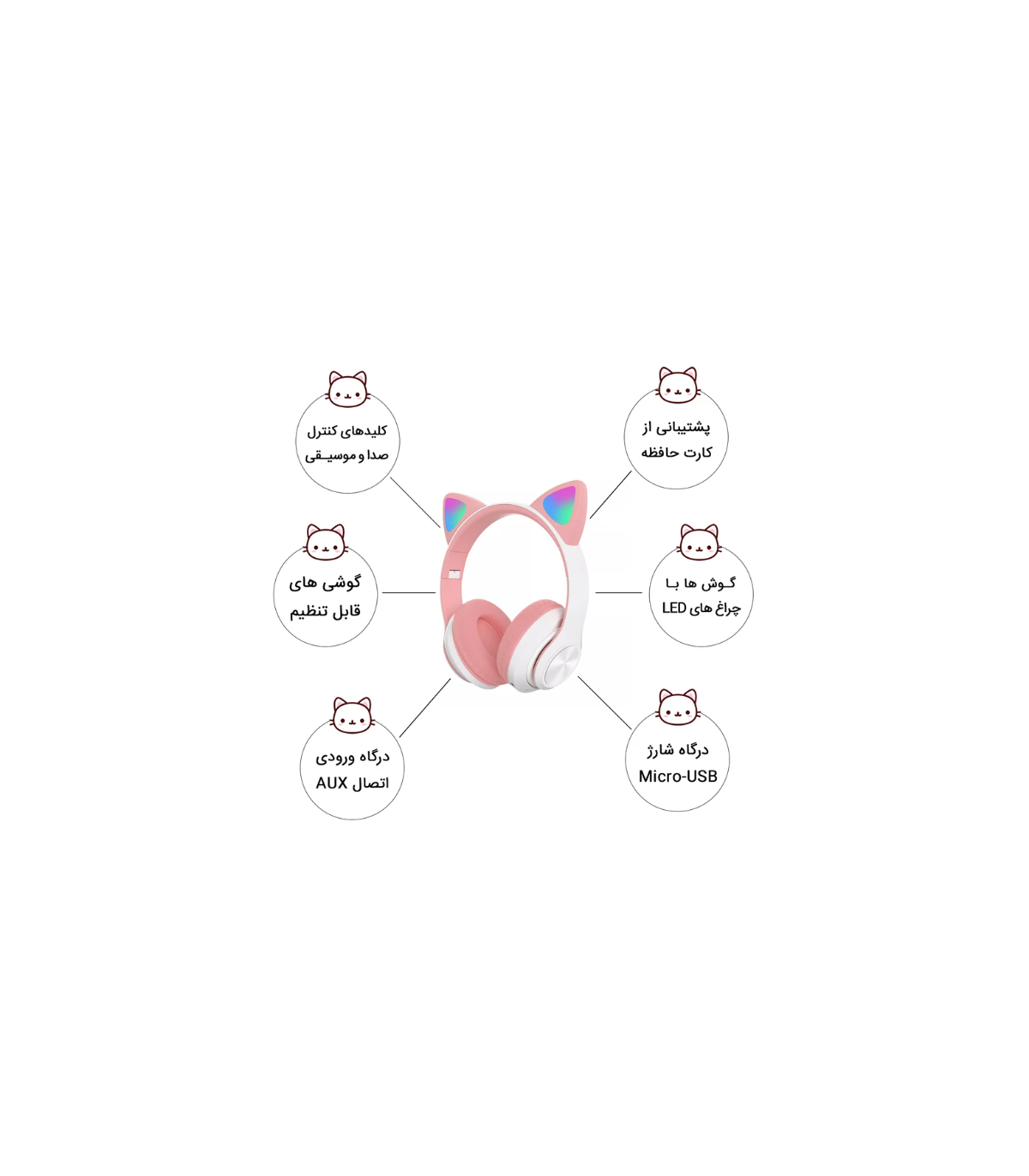این هدفون زیبا دارای دو گوش بر روی دسته ها و با چراغ های ال ای دی رنگی می باشد. سایز دسته ها قابل تنظیم می باشند و گوشی ها جهت حمل آسان تر قابلیت تا شدن دارند. کلیدهای کنترلی بر روی گوشی تعبیه شده که به شما امکان مدیریت کردن موزیک، خاموش و روشن و مکالمه را می دهد. مزیت های قابل توجه هدفون مدل STN-99 ورودی AUX جک 3.5 میلیمتری، ورودی کارت حافظه (مموری کارت) و خاموش شدن خودکار در صورت عدم استفاده، اتصال از طریق بلوتوث و طراحی ارگونومیک و بسیار شکیل می باشد. مدل های کپی و تقلبی مدل STN-99 در بازار بسیار فراوان است. توصیه می کنیم در هنگام تحویل کالا، محصول را با عکس های آلبوم و مشخصات درج شده در سایت مطابقت دهید.