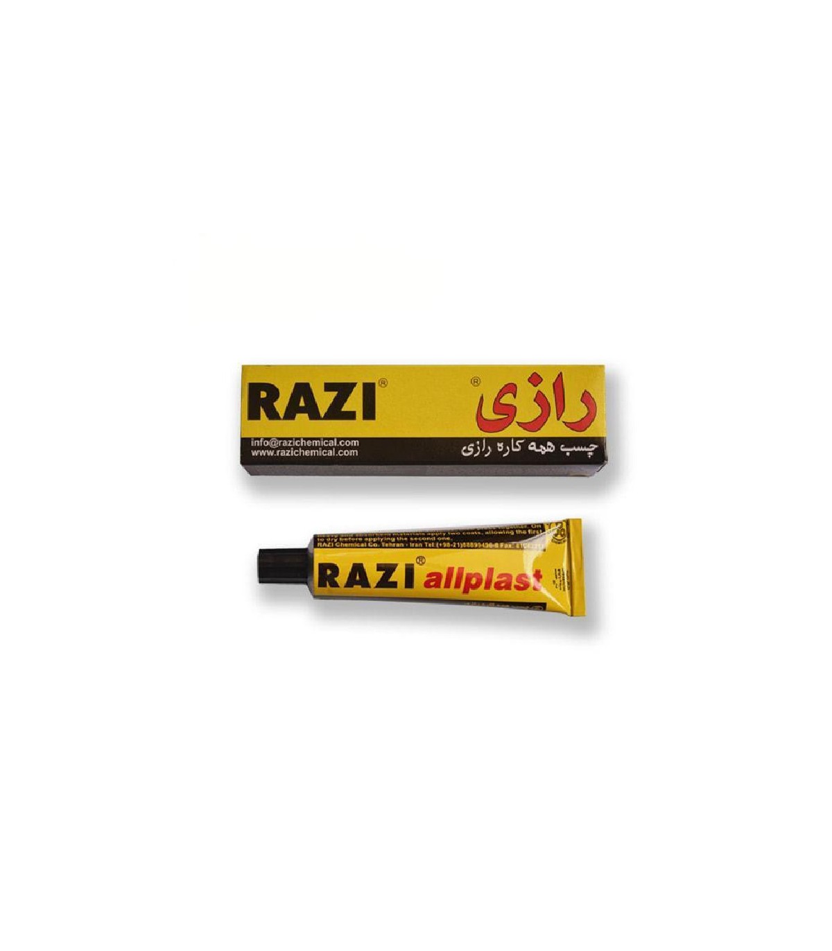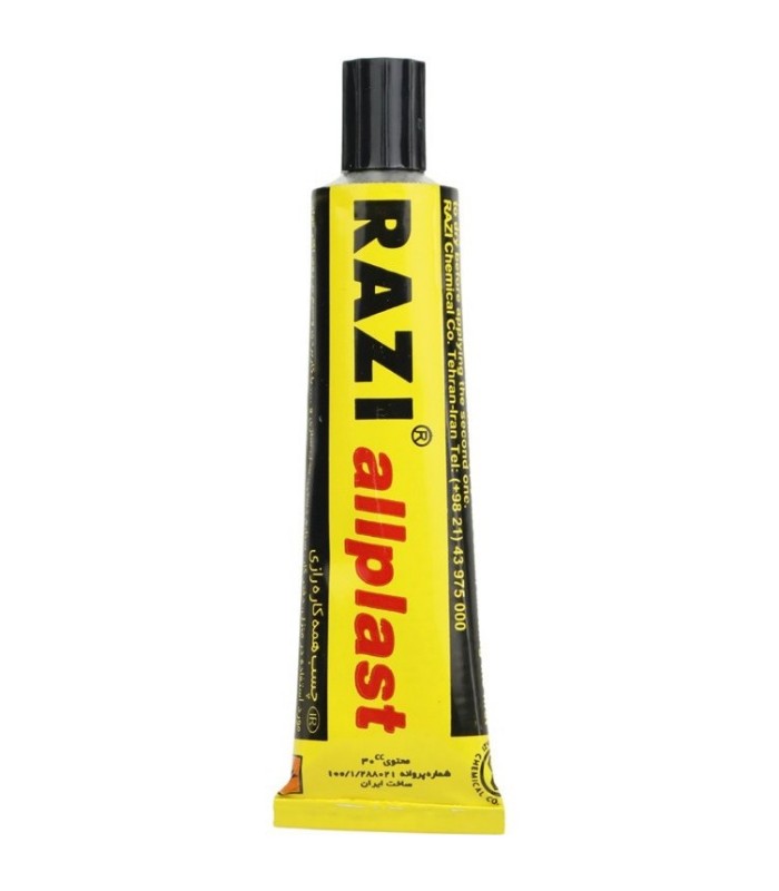 چسب همه کاره رازی ، یک چسب مایع با پایه پلیمرپلی و ینیل کلراید است که استحکام بالا و چسبندگی خوبی دارد و برای چسبوندن انواع سطوح از جمله کاغذ، چرم، پلاستیک و.. مناسب است.