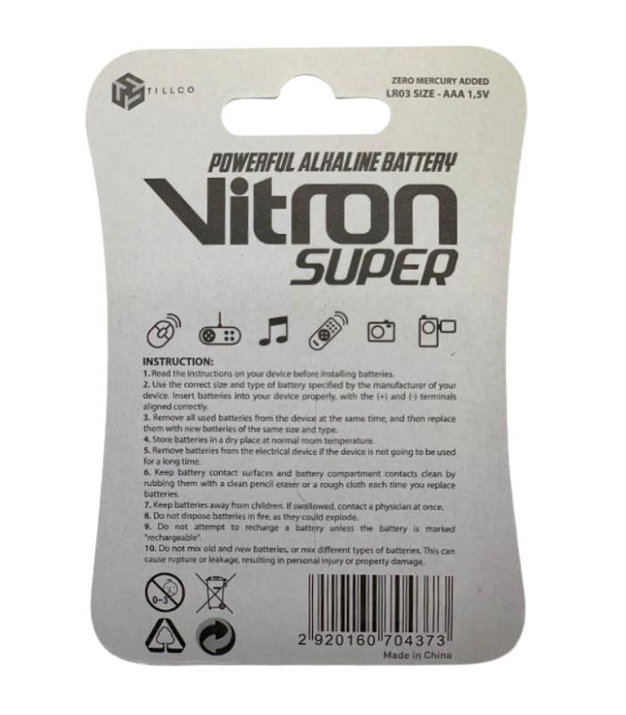 باتری نیم قلم آلکالاین ویترون 2 عددی|باتری با عمر طوانی وبا کیفیت وعملکرد قابل اعتماد برای تمام دستگاه های الکترونیکی شما.
