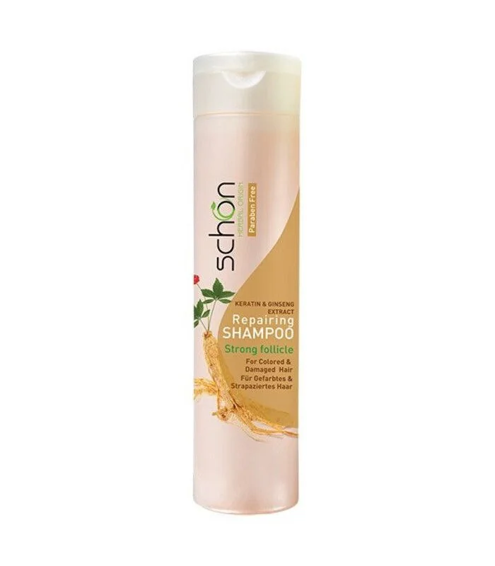 شامپوی ترمیمکننده جینسینگ و کراتین شون با عصاره جینسینگ و کراتین هیدرولیز شده، به ترمیم، تقویت، و افزایش درخشندگی موهای آسیبدیده و رنگ شده کمک میکند.