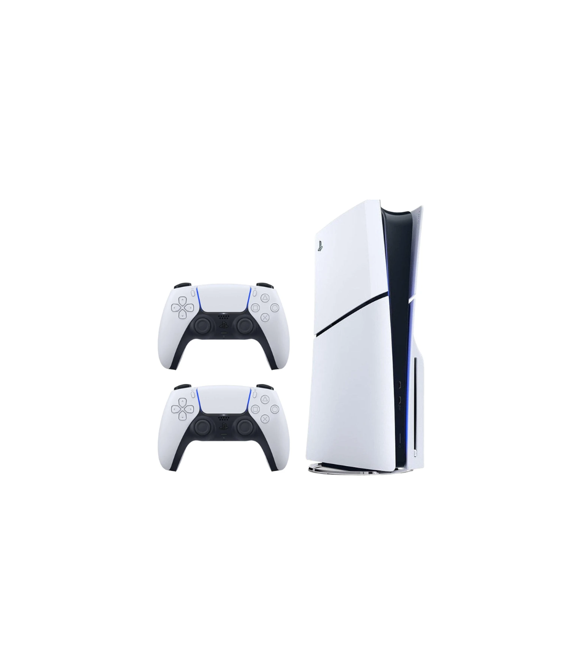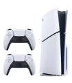 پلی‌استیشن 5 اسلیم (PS5 Slim) نسخه‌ای جمع‌وجورتر و بهینه‌شده از کنسول پلی‌استیشن 5 است که در سال 2023 توسط سونی معرفی شد. این مدل با طراحی باریک‌تر و سبک‌تر نسبت به نسخه اصلی PS5، تجربه‌ای مشابه از بازی‌های نسل نهمی را در قالبی کوچک‌تر و مقرون‌به‌صرفه‌تر ارائه می‌دهد. PS5 Slim همچنان از همان پردازنده AMD Ryzen Zen 2 و پردازنده گرافیکی RDNA 2 بهره می‌برد که قابلیت اجرای بازی‌ها در رزولوشن 4K و نرخ فریم بالا را فراهم می‌کند. این کنسول از یک SSD سریع با ظرفیت 1 ترابایت بهره می‌برد که باعث بارگذاری سریع‌تر بازی‌ها و محتوا می‌شود. همچنین، PS5 Slim از فناوری‌های پیشرفته‌ای مانند Ray Tracing برای جلوه‌های نوری واقع‌گرایانه، 3D Audio برای صدای سه‌بعدی، و Adaptive Triggers در کنترلر DualSense پشتیبانی می‌کند که تجربه گیمینگ را به سطح جدیدی ارتقا می‌دهد. طراحی کنسول به‌گونه‌ای است که علاوه بر زیبایی، عملکرد خنک‌کنندگی و صدای کمتر را نیز به ارمغان می‌آورد.