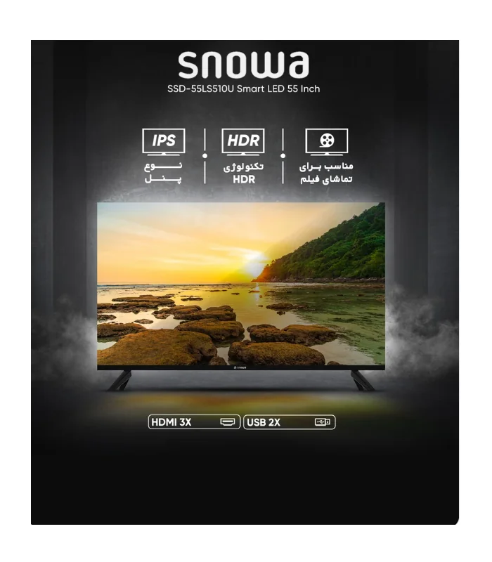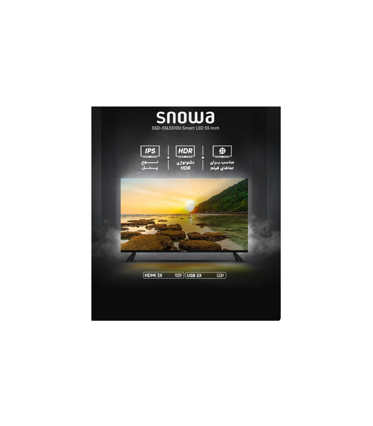 نسبت تصویر استاندارد 16:9 و پنلIPS باعث می‌شود تا تصاویر از هر زاویه‌ای با کیفیت و وضوح بالا دیده شوند. همچنین، پشتیبانی از فناوری HDR وHLG باعث افزایش عمق رنگ و وضوح جزئیات می‌شود و تماشای محتوا را به تجربه‌ای سینمایی تبدیل می‌کند.این مدل با دو بلندگوی 10 واتی و پشتیبانی از استانداردهای صوتیDolby Digital وSurround صدایی شفاف، عمیق و فراگیر را در محیط پخش می‌کند. تلویزیون هوشمند اسنوا مدل SSD-55LS510U دارای حافظه داخلی 8 گیگابایتی است که به شما امکان می‌دهد برنامه‌ها و محتوای دلخواه خود را ذخیره کنید. سه درگاهHDMI و دو پورت USB 0.2 نیز اتصال آسان انواع دستگاه‌ها مانند لپ‌تاپ، کنسول بازی و هارد اکسترنال را فراهم می‌کنند. علاوه بر این، وجود تیونر داخلی DVB-T2 به شما اجازه می‌دهد بدون نیاز به گیرنده دیجیتال مجزا، شبکه‌های تلویزیونی را با بهترین کیفیت دریافت کنید. با قابلیت‌هایی مانند قفل کودک برای ایمنی بیشتر،Time Shift برای توقف و پخش مجدد برنامه‌های زنده و PVR برای ضبط برنامه‌ها، همه‌چیز تحت کنترل شما خواهد بود. طراحی تخت و مدرن این تلویزیون با ابعاد 1234x713x73 میلی‌متر (بدون پایه) به‌راحتی با دکوراسیون منزل شما هماهنگ می‌شود و قابلیت نصب روی دیوار نیز فضای شما را بهینه می‌کند. این تلویزیون با گرید انرژی A و مصرف برق 120 وات در حالت عادی، عملکردی بهینه و مقرون ‌به ‌صرفه را تضمین می‌کند.