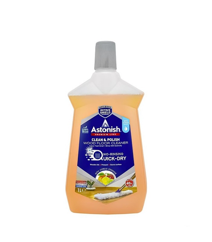 مایع پاک کننده پارکت آستونیش ، با رایحه مرکبات مناسب برای شستشو و مراقبت از کف پوش های چوبی و لمینت . این محصول آلودگی و لکه ها را از بین برده و سطحی تمیز و براق بدون رد گذاری.
