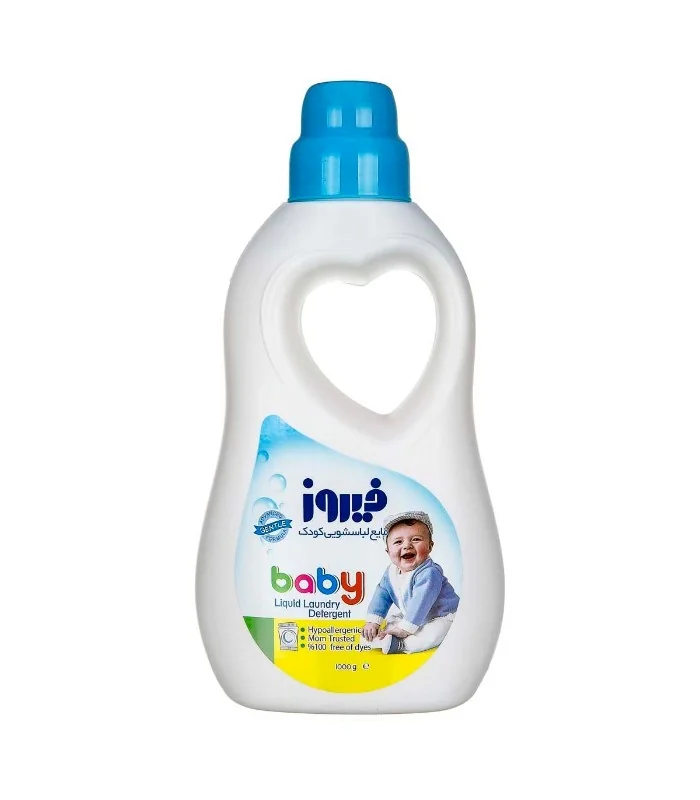 مایع لباس شویی کودک فیروز با فرمولاسیون ملایم و ضد حساسیت مخصوص شست شوی لباس های ظریف و حساس کودک طراحی شده است. این محصول فاقد مواد مضر مانند فسفات و آنزیم بوده است.