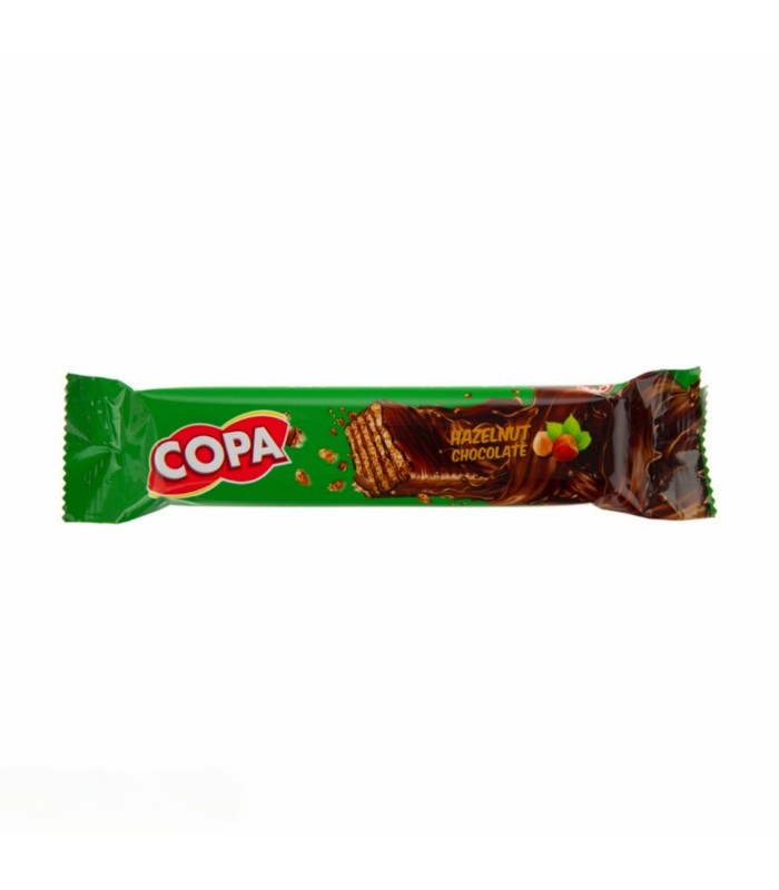 ویفر روکش دار فندقی کوپا، ترکیبی از لایه های ویفر ترد با کرم فندقی و روکش شکلاتی است؛ میان وعده ای خوش طعم با مزه ی خاص فندق.