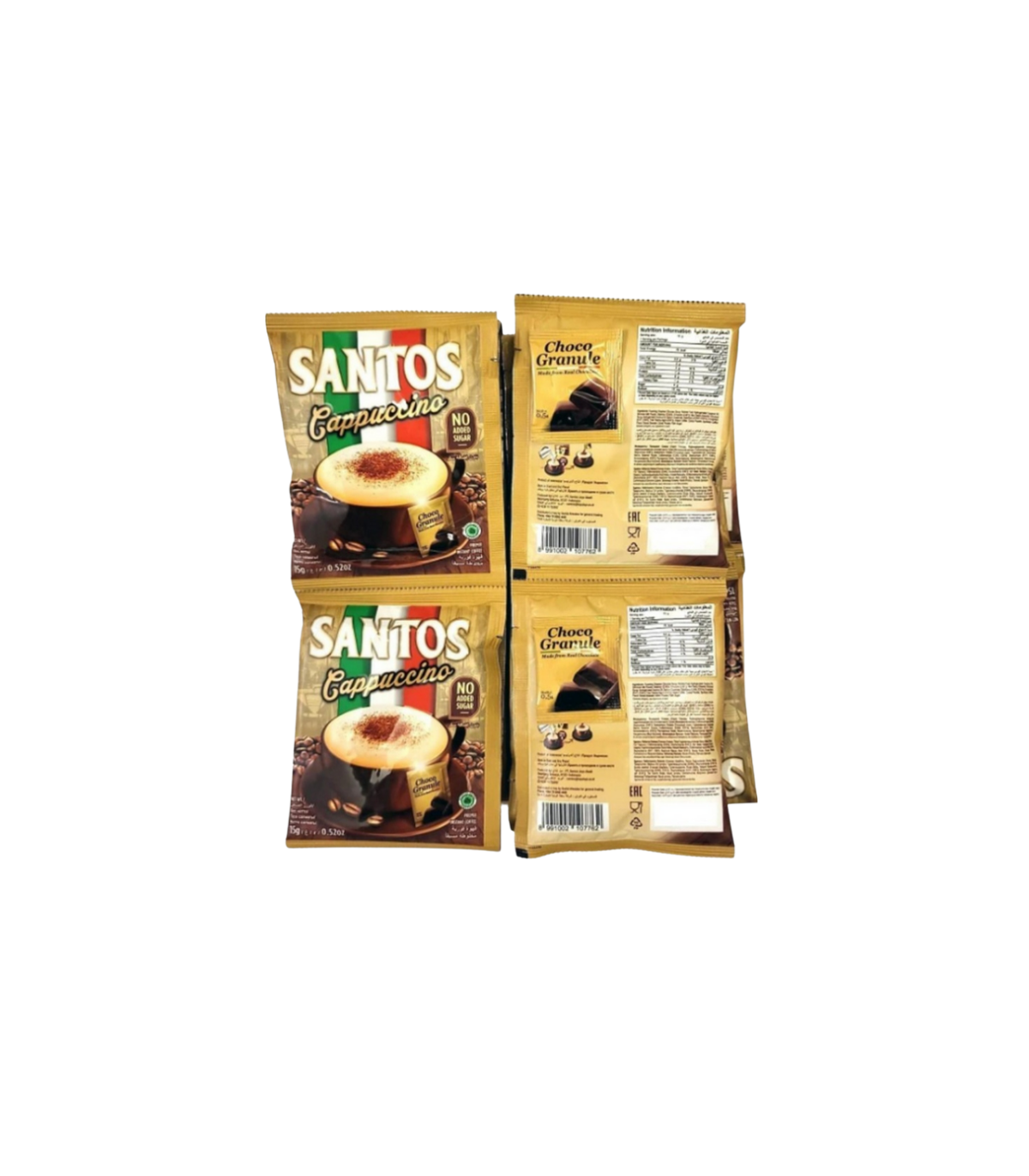 اگر به دنبال یک نوشیدنی خوشمزه و سریع هستید، کاپوچینو ساشه‌ای سانتوس انتخابی عالی است. این محصول خارجی با ترکیبی متعادل از قهوه، شیر خشک و شکر تهیه شده و طعمی کرمی و لذیذ دارد. هر ساشه به‌راحتی در چند ثانیه آماده می‌شود و تجربه‌ای مشابه با قهوه‌خانه‌های ایتالیایی را برای شما به ارمغان می‌آورد.