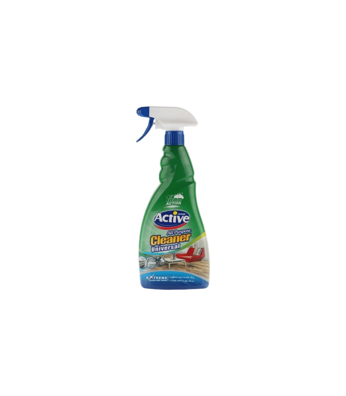 پاک‌ کننده چند منظوره اکتیو یک محلول شوینده مناسب برای نظافت روزانه سطوح مختلف است. این محصول با فرمولاسیون مخصوص، آلودگی و گردوغبار را از بین می‌برد و سطحی تمیز و خوشبو به‌جا می‌گذارد. قابل استفاده بر روی سطوحی مانند میز، کابینت، درب‌ها، شیشه، کاشی و حتی وسایل برقی (سطوح خارجی).