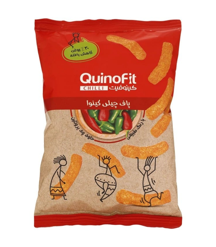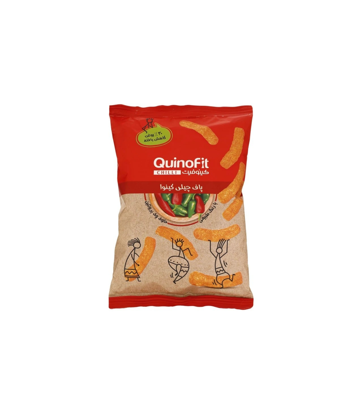 پاف چیلی کینوا 45 گرم کینوفیت، یک اسنک سالم و خوشمزه با طعم تند چیلی است که از دانههای مغذی کینوا تهیه شده و انتخابی عالی برای میانوعدهای مقوی و کمچرب به حساب میآید.