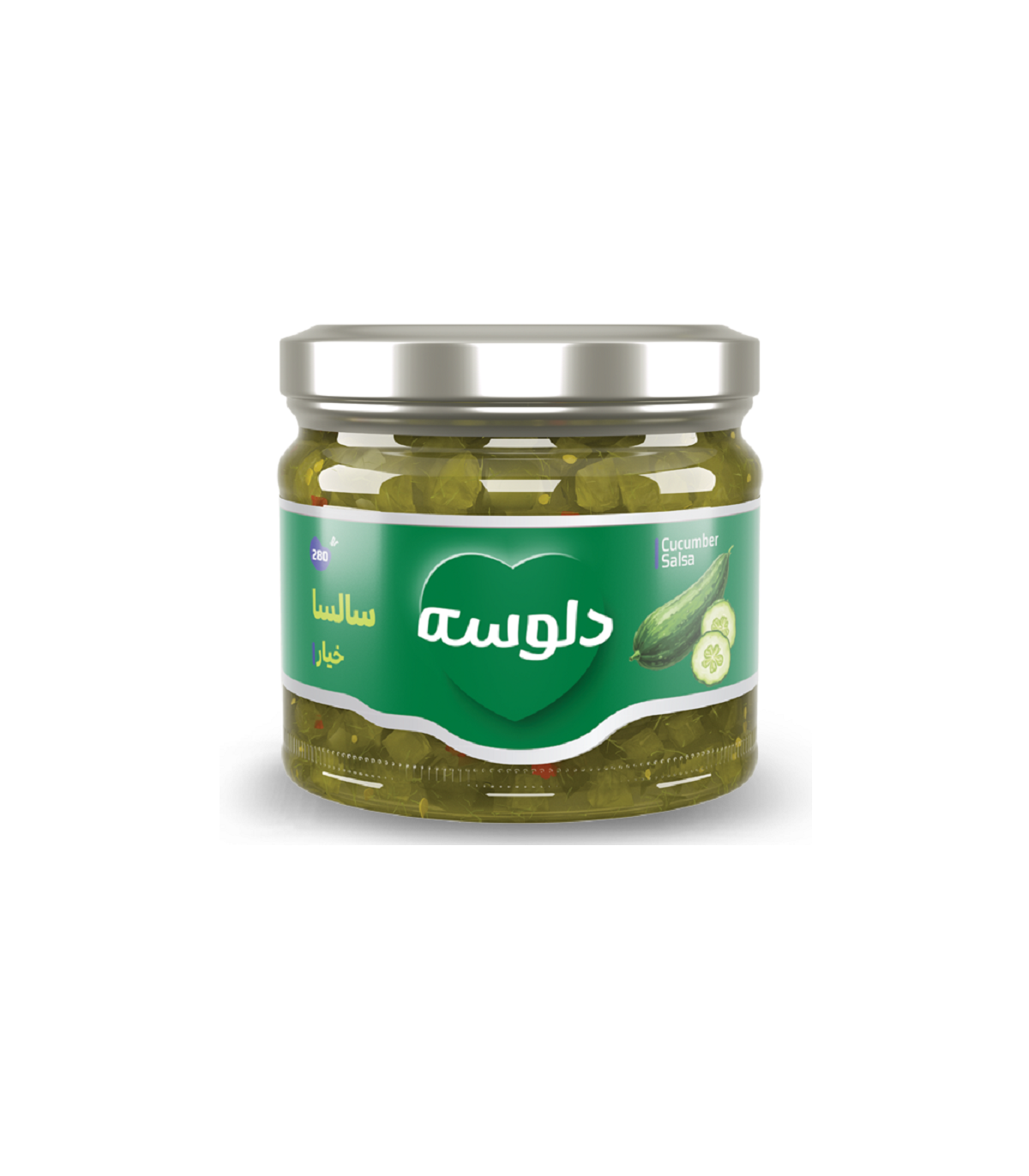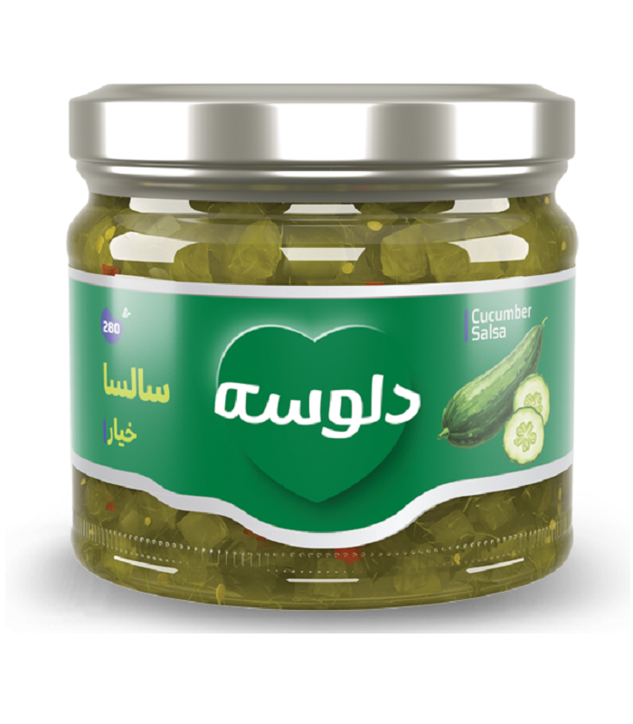 سس سالسا خیار دلوسه 280 گرم دارای خیار نگین شده،شکر،فلفل دلمه ای،سرکه با اسیدیته 11 % ،نمک خوراکی تصفیه شده ، آب آشامیدنی می باشد.