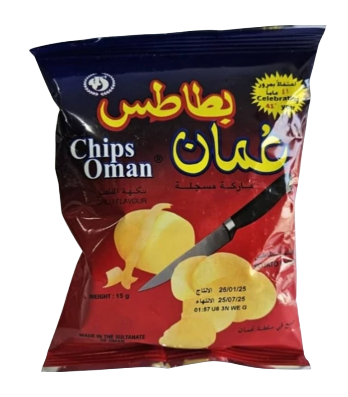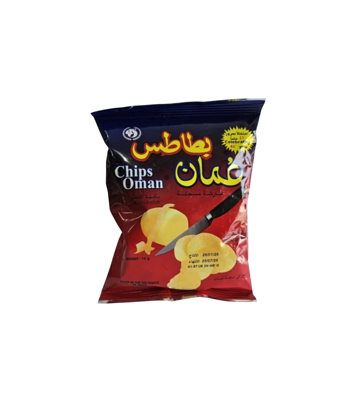 چیپس 15 گرم عمان، یک میانوعده خوشمزه و ترد با طعم خاص و نمکی عمانی است که در بستهبندی کوچک و سبک عرضه میشود و انتخابی عالی برای همراهی در سفر، محل کار و تفریح به شمار میآید.