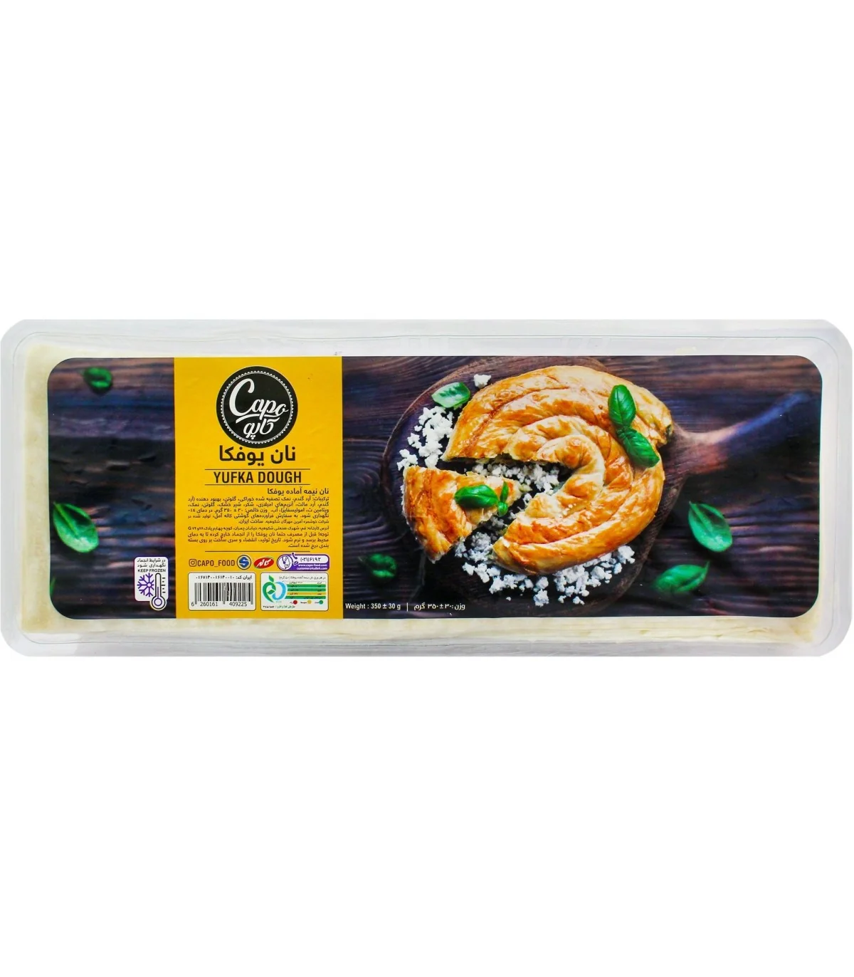 نان یوفکا برند کاپو با بافت لطیف و انعطافپذیر، مناسب برای پخت انواع غذاهای ترکی و فینگر فود است. این نان آماده مصرف بوده و پس از پخت، ترد و طلایی میشود و طعمی خوشایند و خانگی به غذاها میدهد.