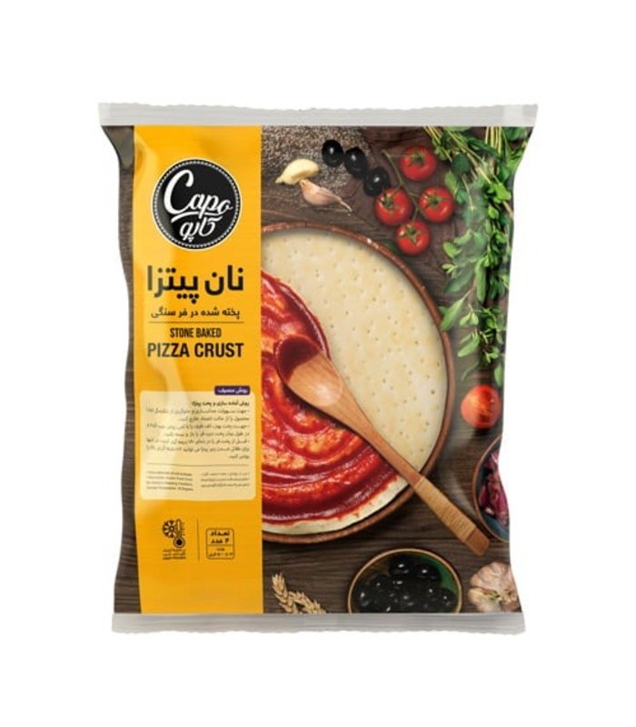 نان پیتزا کاپو، آماده و خوشطعم برای تهیه انواع پیتزاهای خانگی سریع و حرفهای.