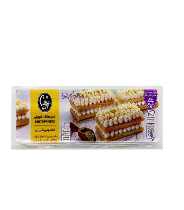 خمیر هزارلای شیرینی با بافت سبک و لایههای کرهای، مناسب برای پخت شیرینی، پای و دسرهای خانگی و مجلسی است. این خمیر آماده مصرف، پس از پخت ترد و طلایی شده و طعمی خوشایند و بافتی حرفهای به شیرینیها میدهد
