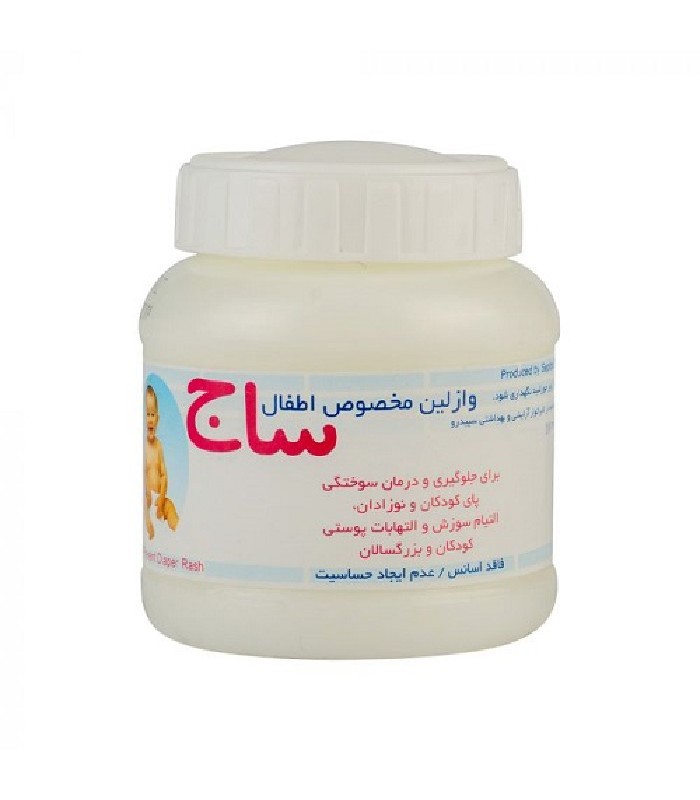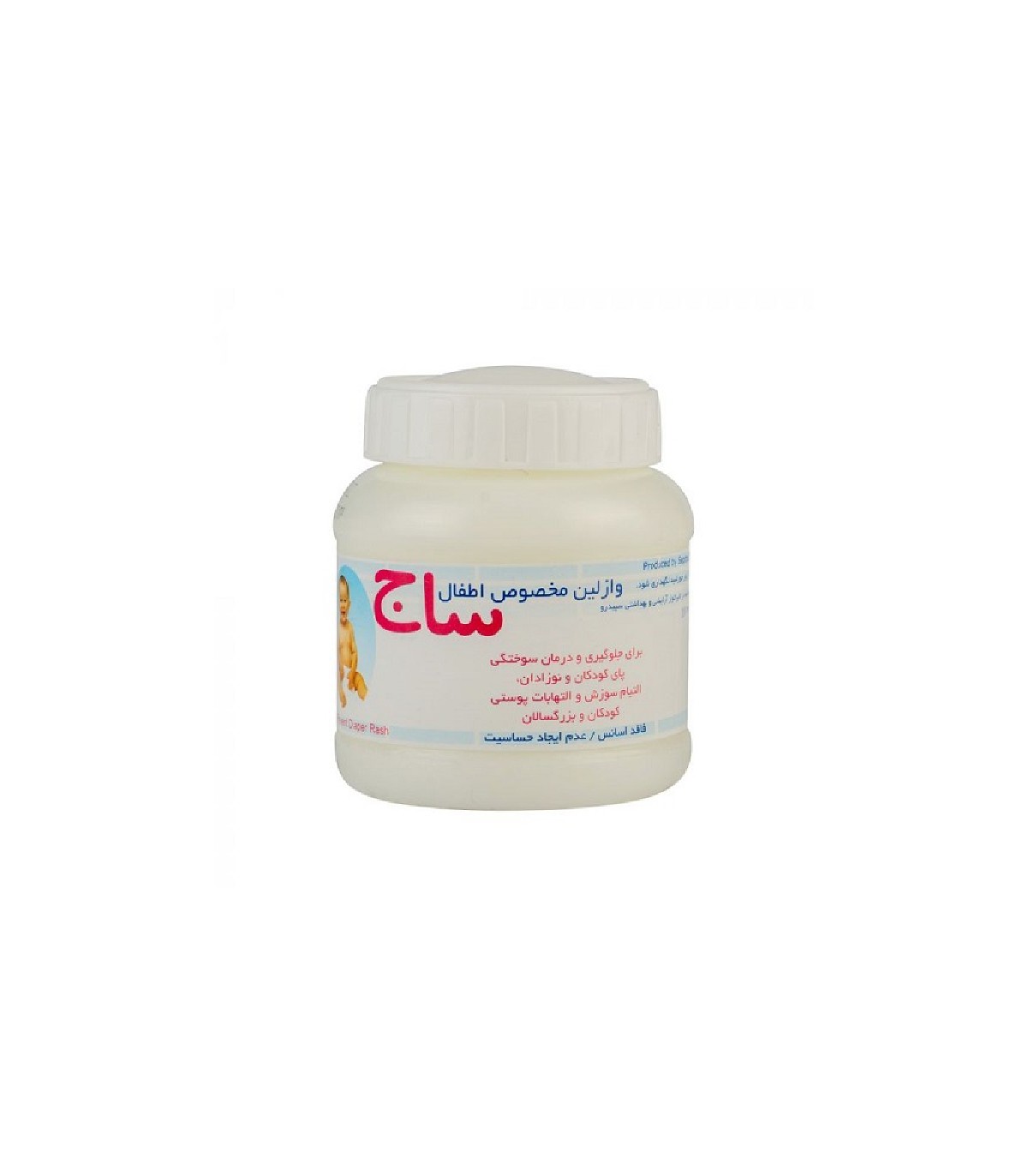 وازلین اطفال ساج محصولی ملایم و ایمن برای مراقبت از پوست حساس کودکان است. این وازلین با ترکیب زینک اکساید، موم زنبورعسل و وازلین دارویی خالص، التهابات پوستی، ادرار‌سوختگی و سوختگی‌های سطحی را به‌طور مؤثر درمان می‌کند.