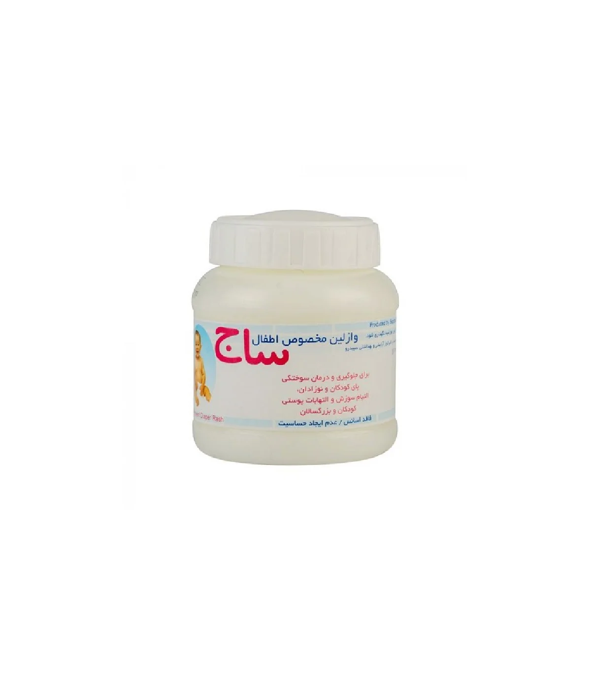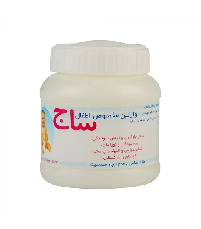 وازلین اطفال ساج محصولی ملایم و ایمن برای مراقبت از پوست حساس کودکان است. این وازلین با ترکیب زینک اکساید، موم زنبورعسل و وازلین دارویی خالص، التهابات پوستی، ادرارسوختگی و سوختگیهای سطحی را بهطور مؤثر درمان میکند.