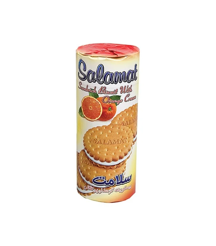 بیسکویت کرمدار پرتقالی لوله ای تداعی طعم میوه ی تازه تهیه شده با کنسانتره طبیعی پرتقال است. مواد تشکیل دهنده بیسکویت کرمدار عبارتند از: آرد گندم، شکر، روغن نباتی، تخم مرغ، شربت اینورت، پودرآب پنیر ، اسانس پرتقال، کنسانتره پرتقال و آب آشامیدنی.