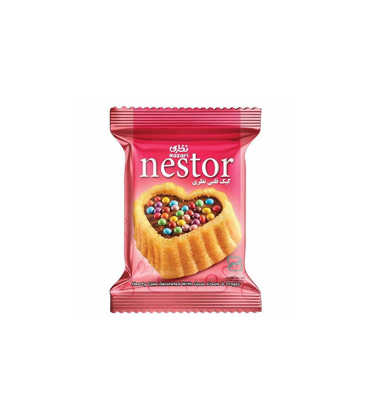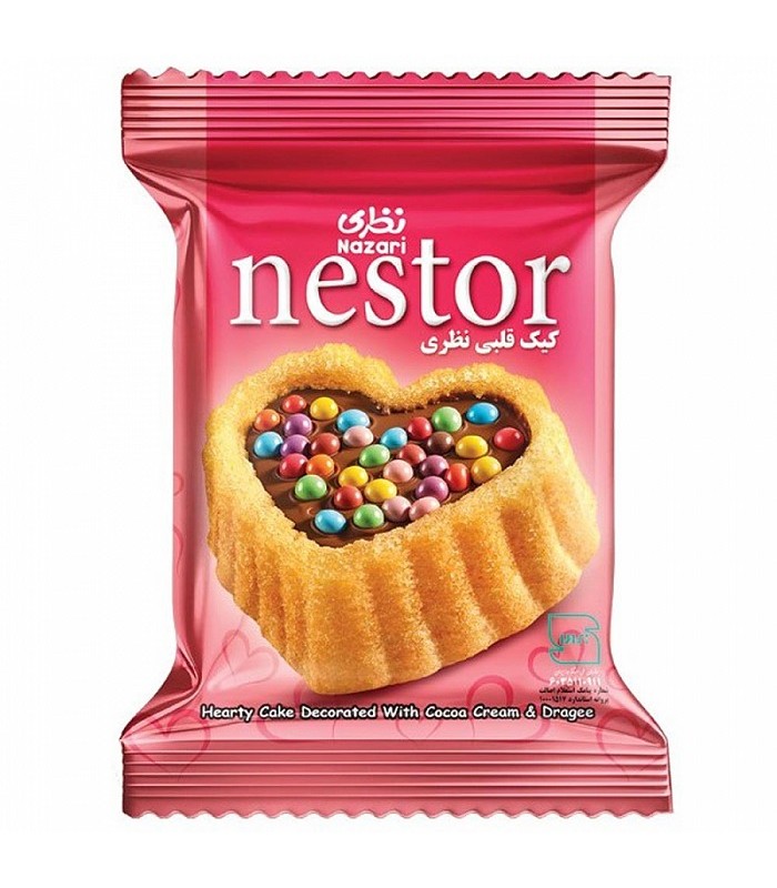 کیک قلبی نستور نظری 65 گرم موجود است.اسمارتیزهای روی کیک این محصول را زیباتر کرده است.