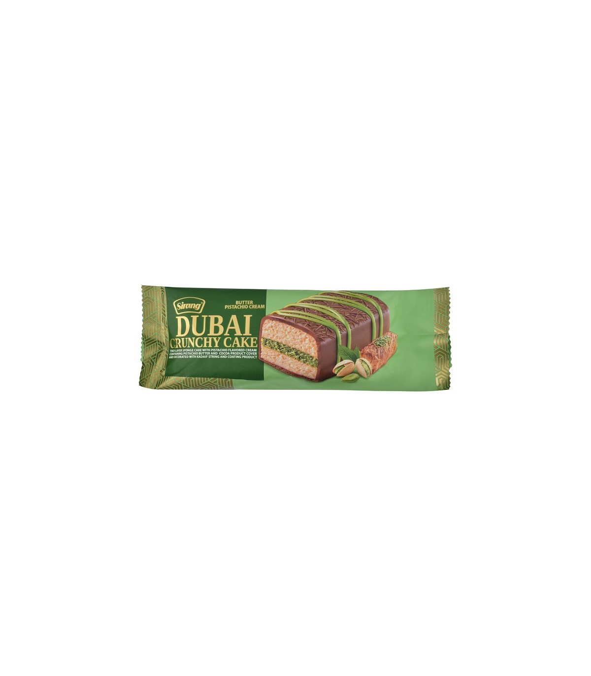 کیک اسفنجی مغزدار دبی سیرنگ 55 گرم موجود است.این محصول دارای طعم کره ای ، پسته ای بسیار خوشمزه است.