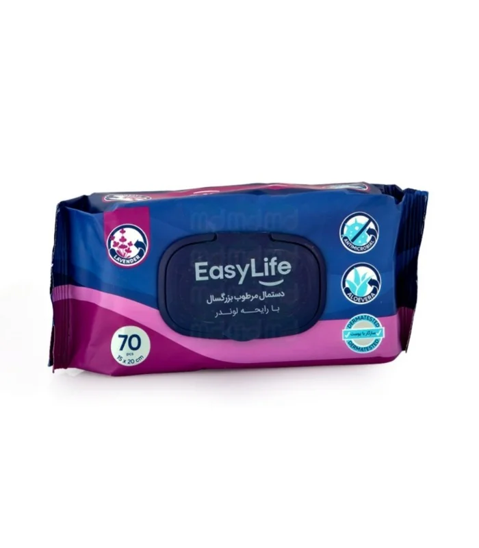 دستمال مرطوب بزرگسال Easy life با رایحه لوندر 70 عددی