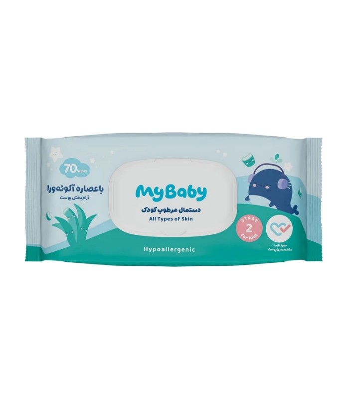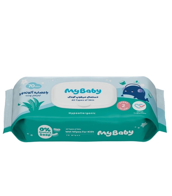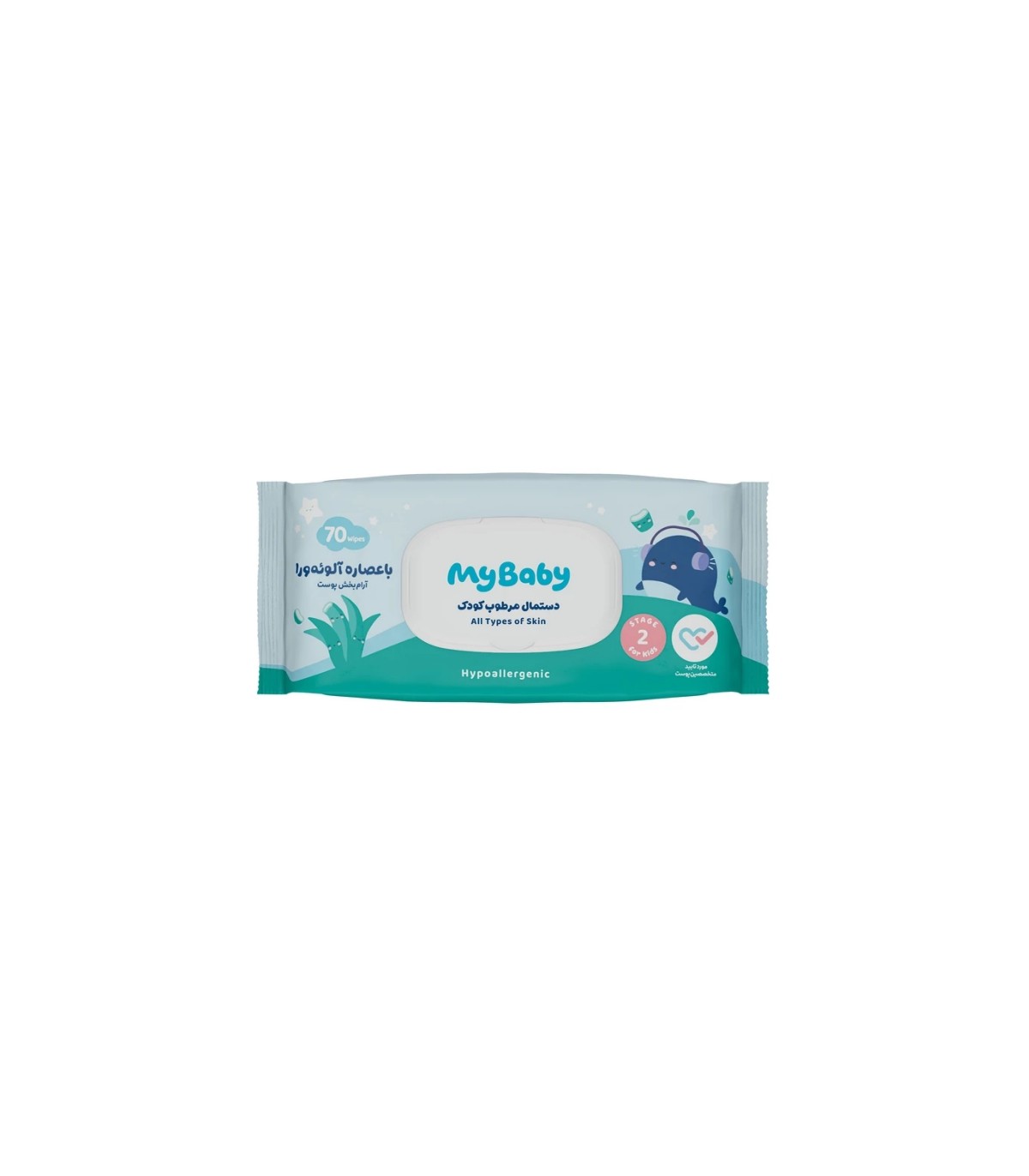 دستمال مرطوب کودک مای بیبی با عصاره آلوئه ورا 70 عددی