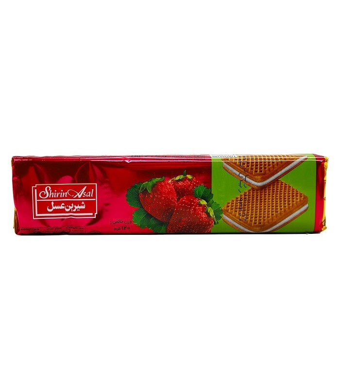 بیسکویت ساندویچی شیرین عسل 120 گرم یک میان وعده‌ی بسیار لذیذ برای تمام گروه‌های سنی به ویژه کودکان، بیسکویت کرمدار با طعم توت فرنگی است.