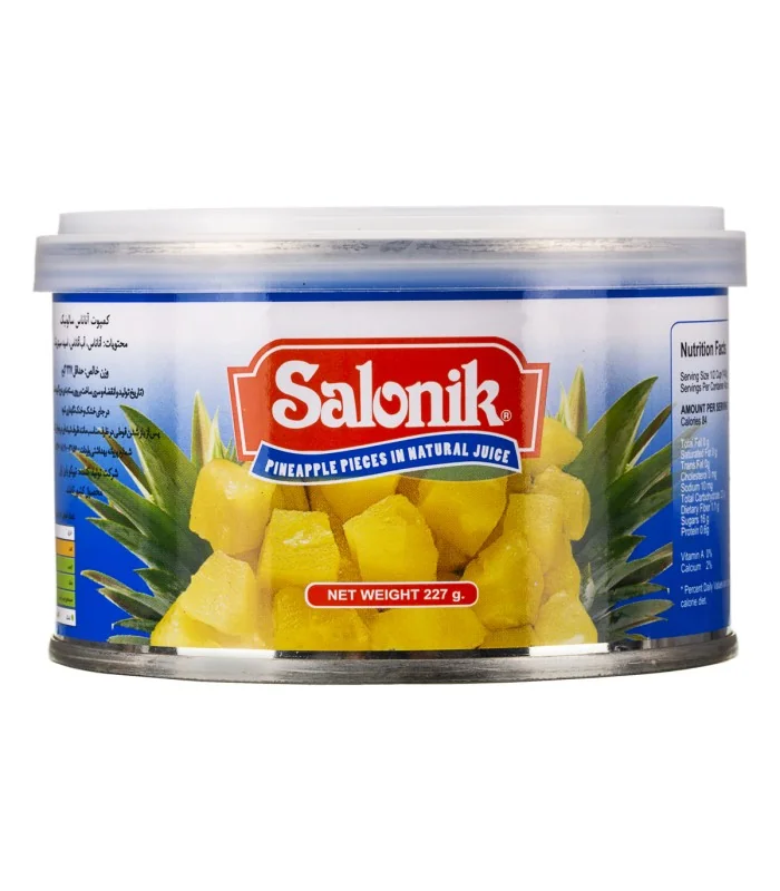 کمپوت آناناس “سالونیک” تحت بالاترین استانداردهای کیفی تولید شده و بدون هیچ‌گونه مواد نگهدارنده مصنوعی یا رنگ‌های خوراکی مضر عرضه می‌گردد.