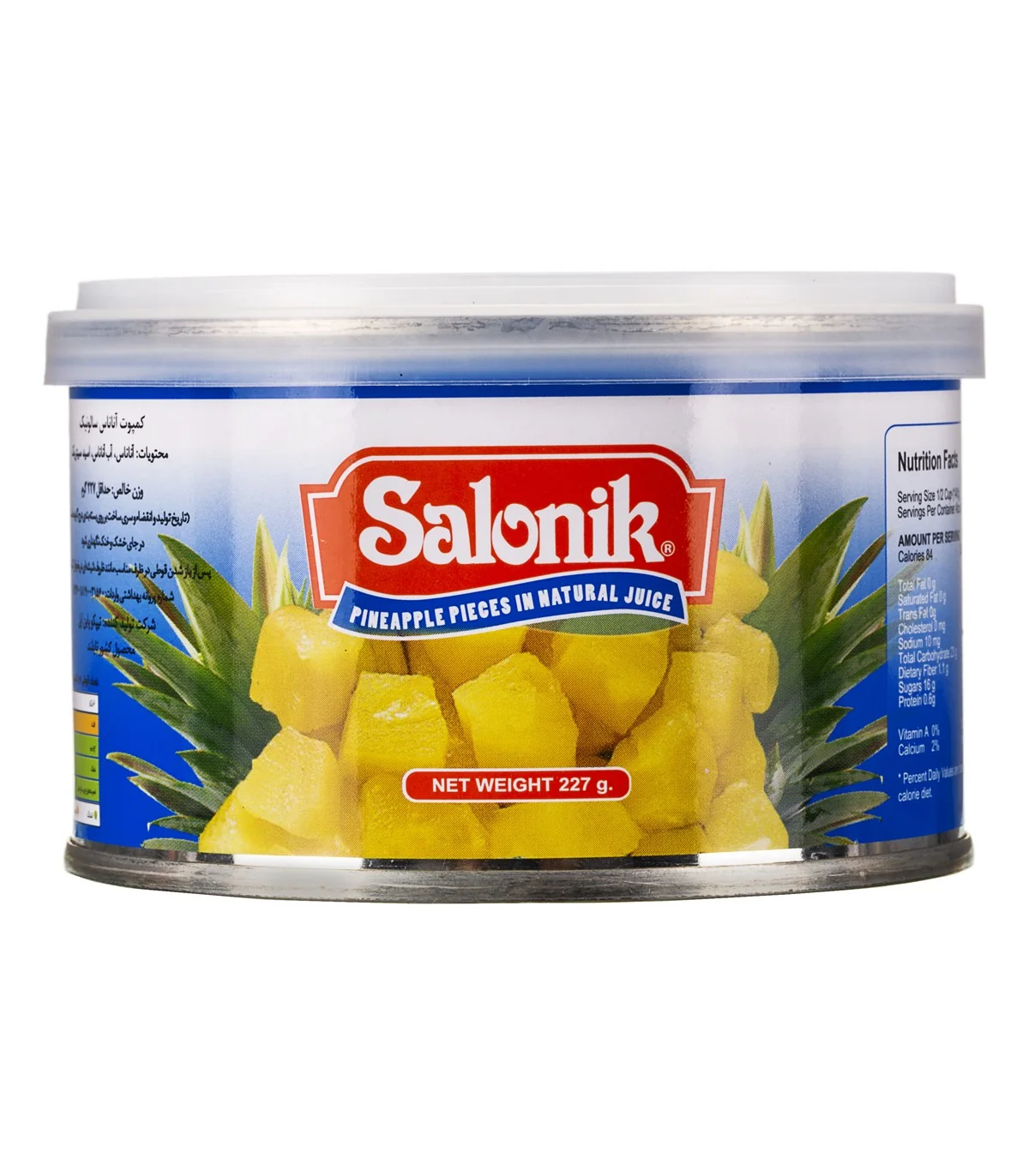 کمپوت آناناس “سالونیک”، طعم دلنشین و طبیعی آناناس رسیده را در هر زمان از سال تجربه کنید. این کمپوت با دقت و وسواس فراوان از بهترین آناناس‌ها تهیه شده تا تجربه‌ای شیرین، آبدار و کاملاً طبیعی را برای شما به ارمغان آورد.