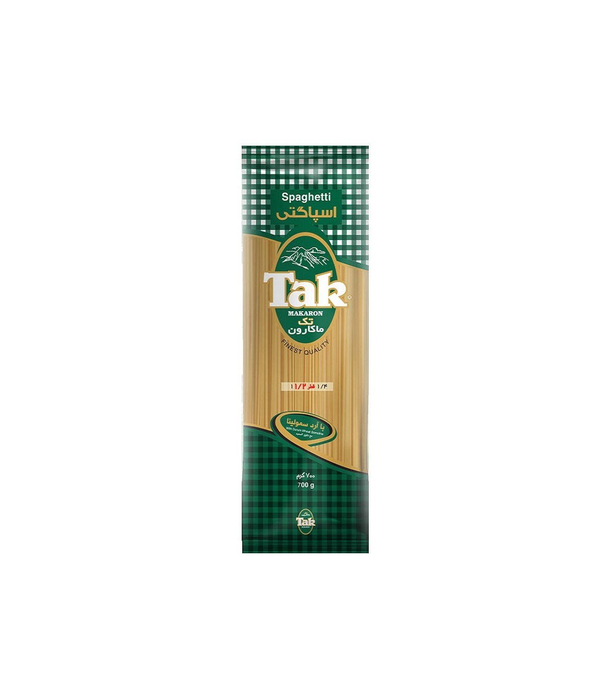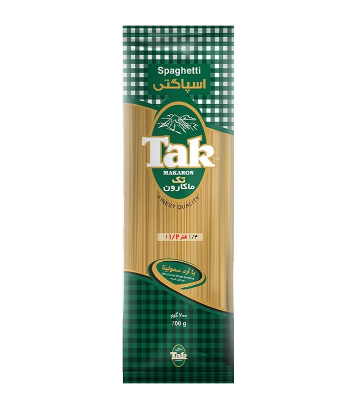 اسپاگتی تک ماکارون قطر 1.2 700 گرم با آرد سمولینا تولید شده است.این محصول حاوی 6.7 گرم پروتئین است.