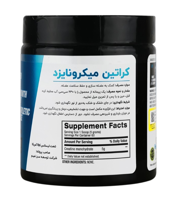 کراتین میکرونایزد BPI، مکملی با جذب سریع و حلالیت بالا که به افزایش حجم عضلات، بهبود ریکاوری و کاهش خستگی بعد از تمرین کمک میکند. مناسب ورزشکاران و بدنسازان حرفهای.