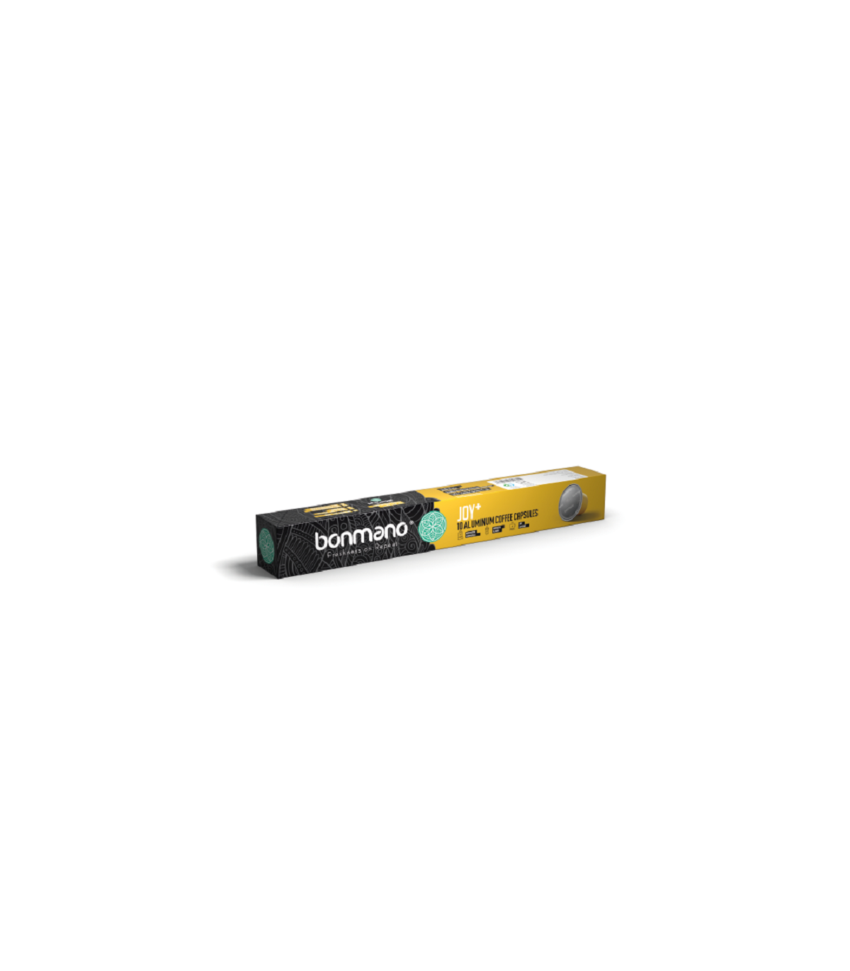 کپسول اسپرسو جوی پلاس (+JOY) یکی از انواع کپسول قهوه بنمانو است که از ترکیب 100% قهوه عربیکای تازه برشت با درجه رست مدیوم دارک و کافئین کم تهیه شده است.