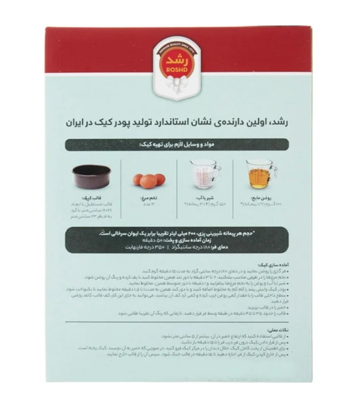 پودر کیک وانیلی رشد با فرمولی استاندارد و خوشعطر، بهترین گزینه برای کسانی است که میخواهند بدون دردسر، کیکی نرم و اسفنجی تهیه کنند. کافی است این پودر را با مقدار مشخصی آب، تخممرغ و روغن ترکیب کرده و در فر قرار دهید تا یک کیک کاملاً پفدار و خوشطعم آماده شود.