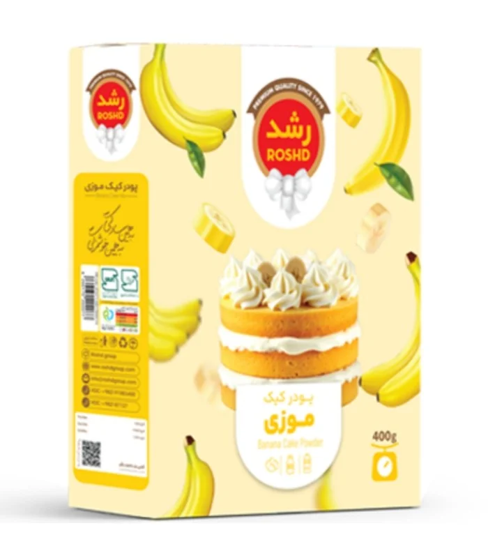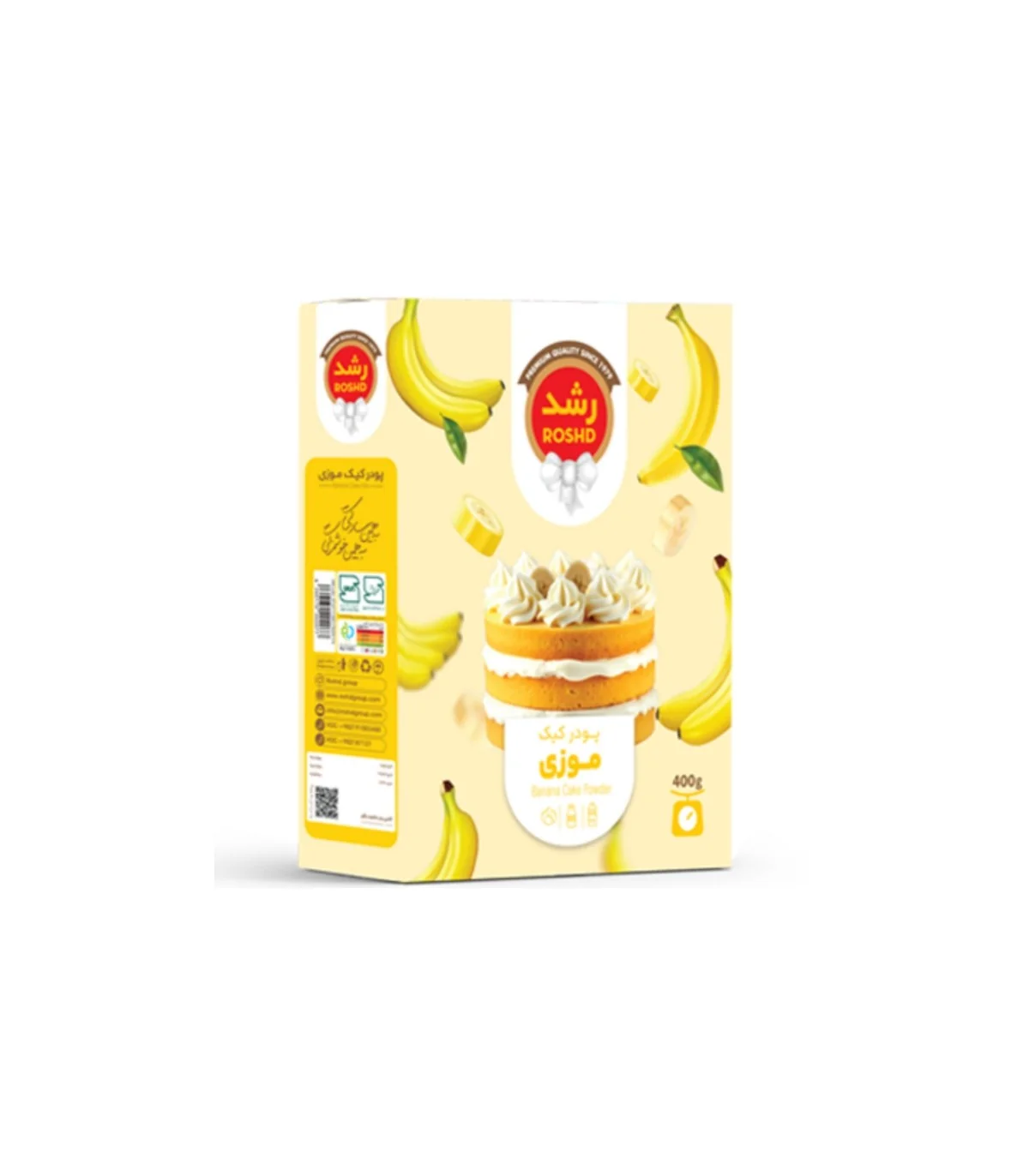 پودر کیک موزی رشد با عطر و طعم خوشمزه موز، انتخابی عالی برای تهیه سریع و آسان کیک خانگی است.