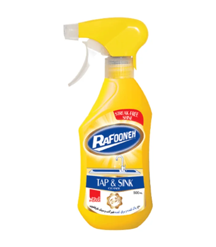 اسپری پاک کننده شیرآلات و سینک ظرفشویی رافونه علاوه بر قدرت تمیز کنندگی بالا، دارای قابلیت ضدعفونی کننده و براق کننده تمامی سطوح استیل و فلزی هم می باشد و محصولی پر طرفدار است.