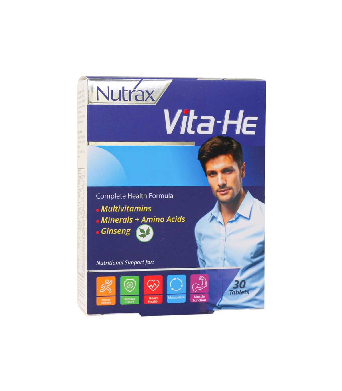 • قرص مولتی ویتامین و مینرال ویتا هی نوتراکس فرآورده‌ای مخصوص آقایان برای تامین روزانه مواد معدنی و املاح مورد نیاز بدن آن‌ها است. این محصول مواد حساسیت زا ندارد و بدون هیچ مشکلی می توان از آن استفاده کرد.