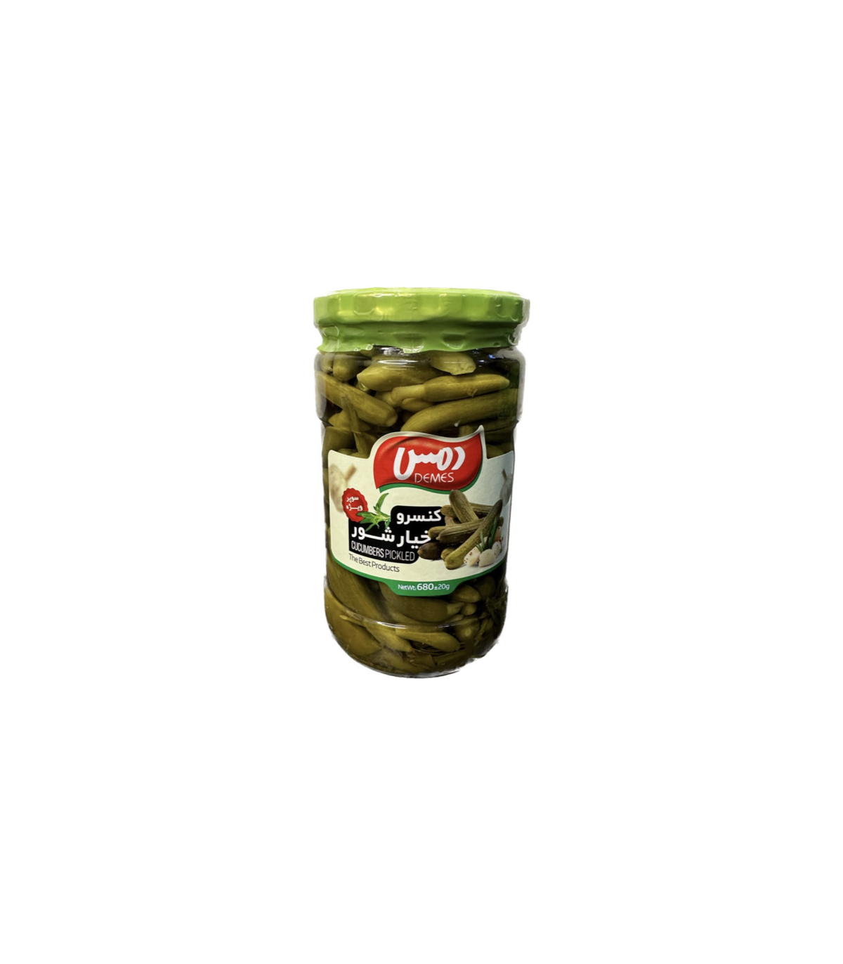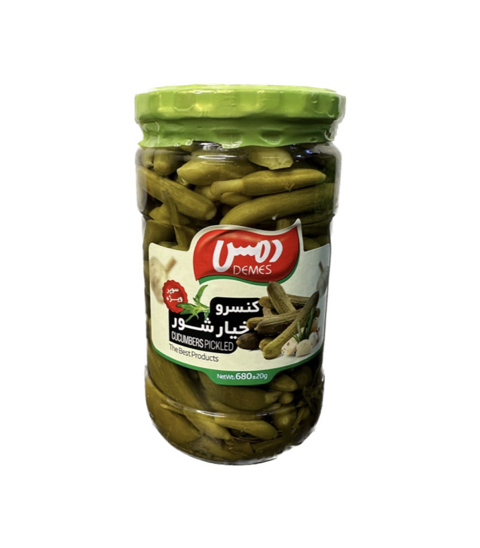 خیارشور ویژه دمس با طعم حرفه ای و بافت ترد؛ مناسب کنار غذا و ساندویچ.