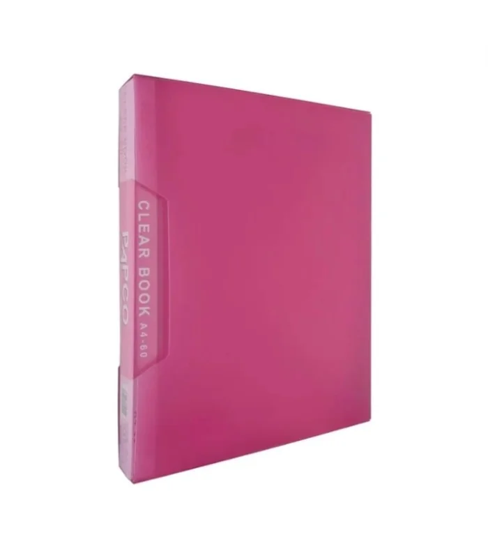 کلیر بوک پاپکو مدل A4‑60FRT با 60 کاور شفاف و قاب محافظ کشویی، امکان نگهداری تا 120 برگ A4 را فراهم میآورد