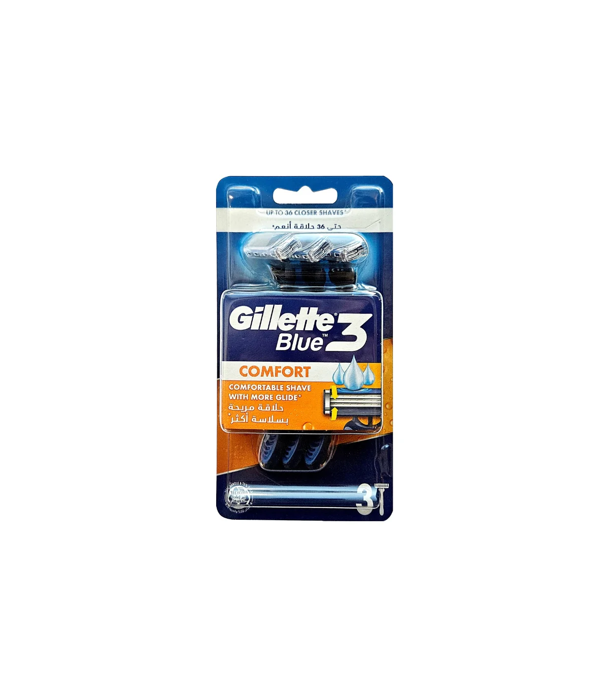 ژیلت Gillette Blue 3 Comfort یکی از پرفروشترین مدلهای ژیلت برای اصلاحی تمیز، دقیق و بدون سوزش است. این محصول با 3 تیغه فوقالعاده تیز و نوار روانکننده تقویتشده ساخته شده تا حرکت تیغ روی پوست بسیار نرم و راحت باشد.