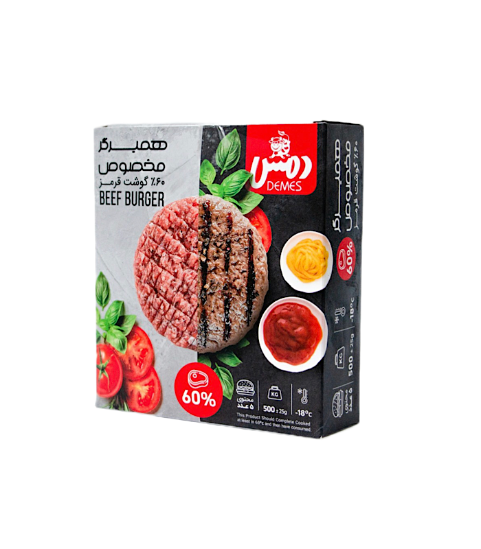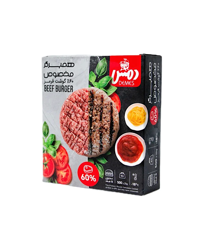 همبرگر مخصوص 60درصد گوشت قرمز انتخابی خوشطعم و سالم برای یک وعدهی کامل