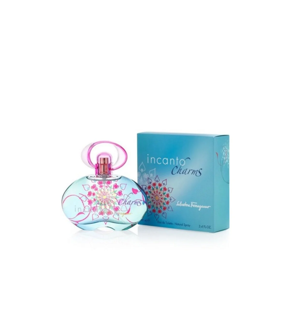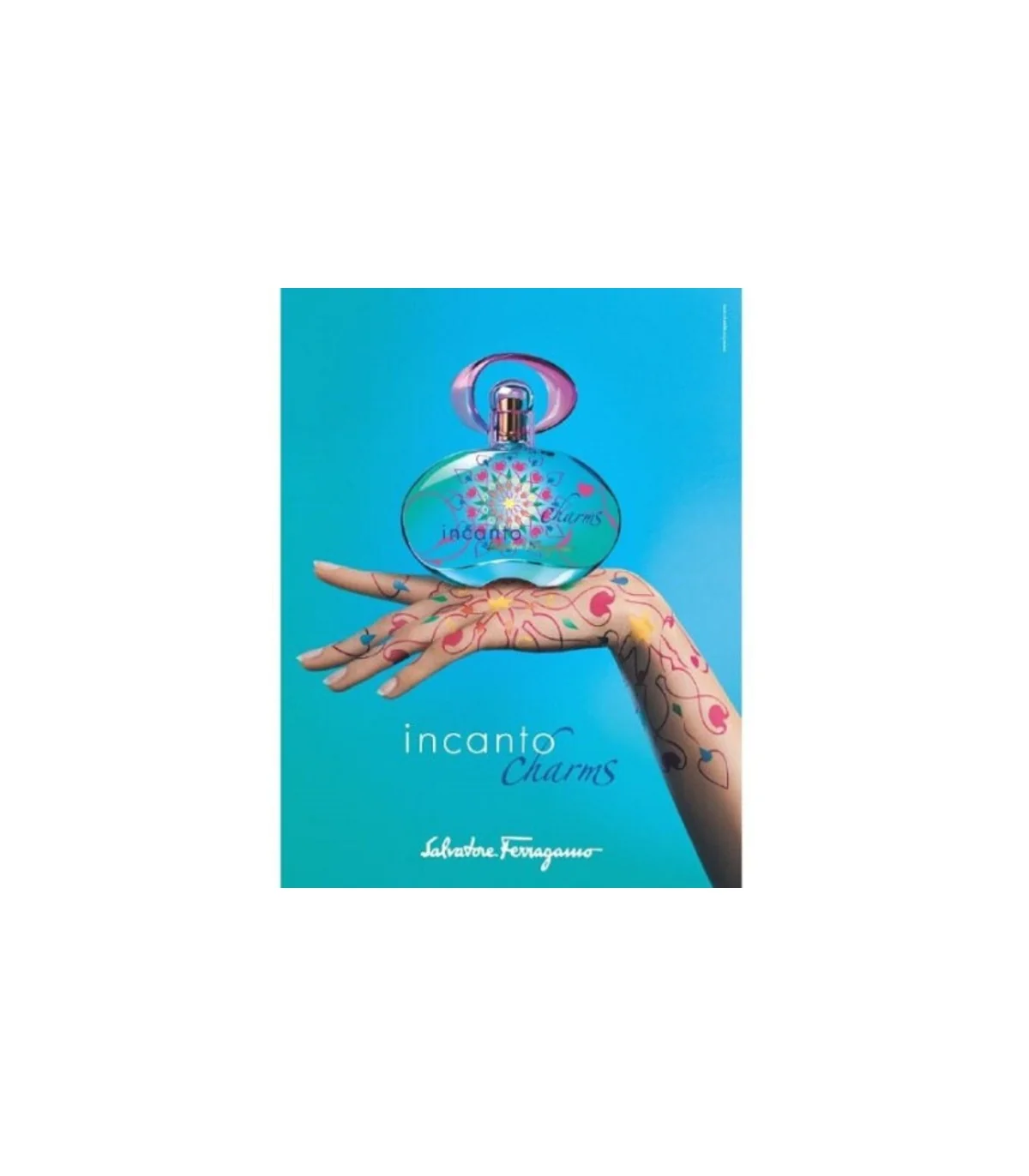 یکی از ویژگیهای متمایز این عطر، طراحی شیشهی آن است که توسط سیلویا دو فرانس طراحی شده است. استفاده از رنگهای فیروزهای و بنفش در کنار نقوش انتزاعی، به خوبی منعکسکننده ماهیت فانتزی و رویایی محتویات درون آن است. ادکلن ادو تویلت زنانه سالواتوره فراگامو مدل Incanto Charms حجم 100 میلی لیتر فراتر از یک عطر، یک اثر هنری است که ذوق و سلیقه ایتالیایی را در تمام جزئیات خود، از رایحه گرفته تا بستهبندی، به نمایش میگذارد.